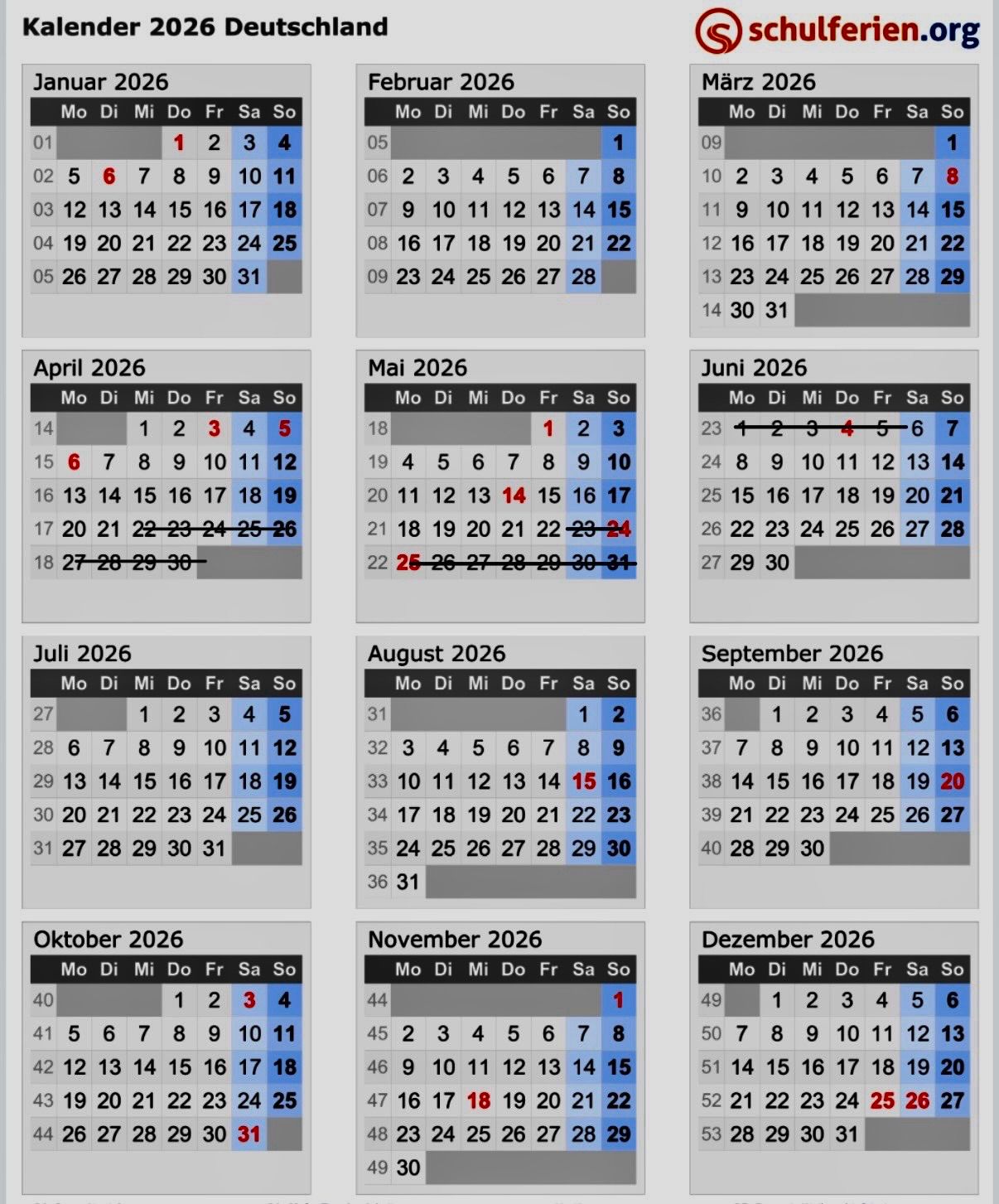 | 01.01. - 31.03. | 01.04 - 30.06. | 01.07. - 15.09. | 16.09. - 31.10. | 01.11. - 31.12. |