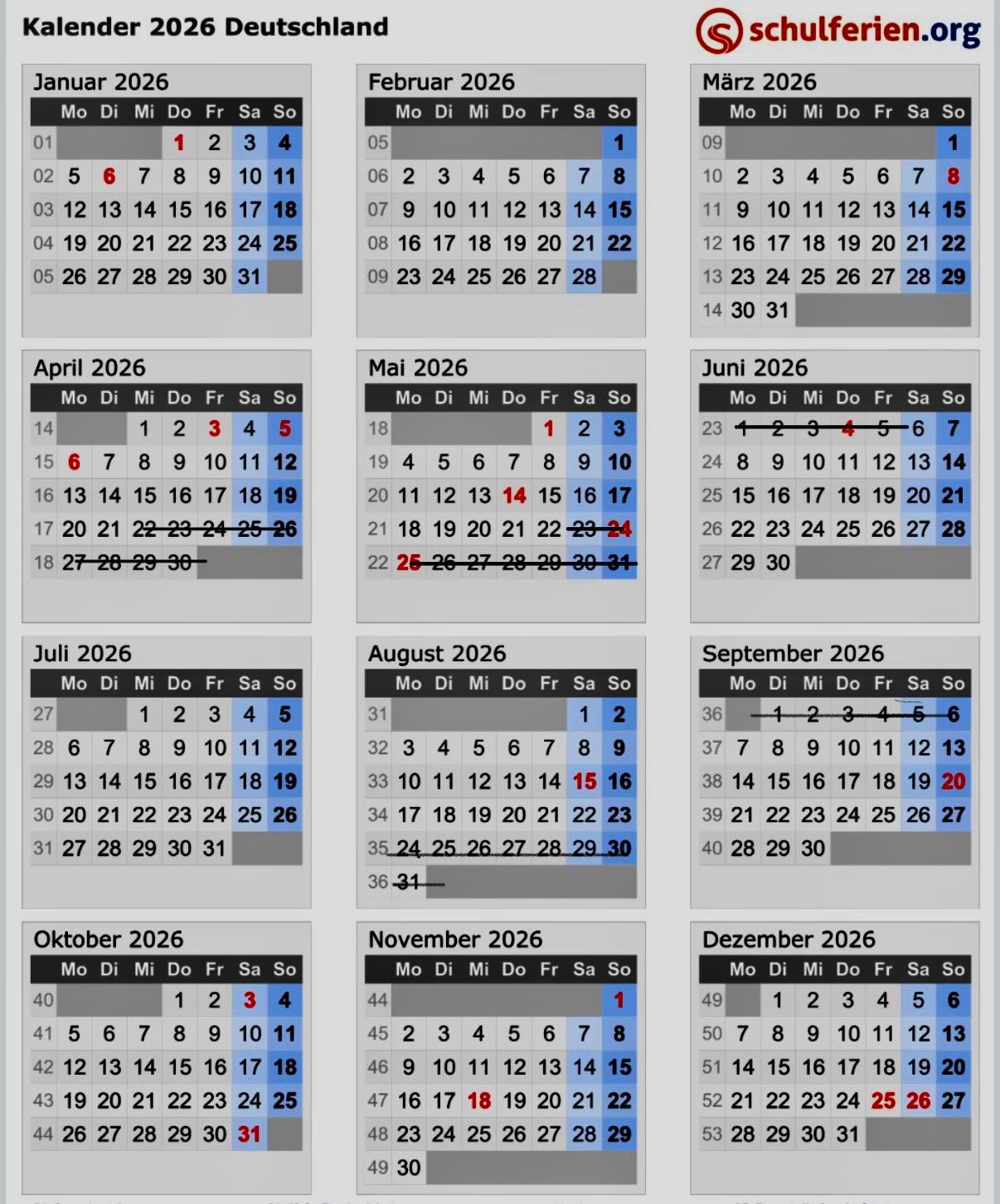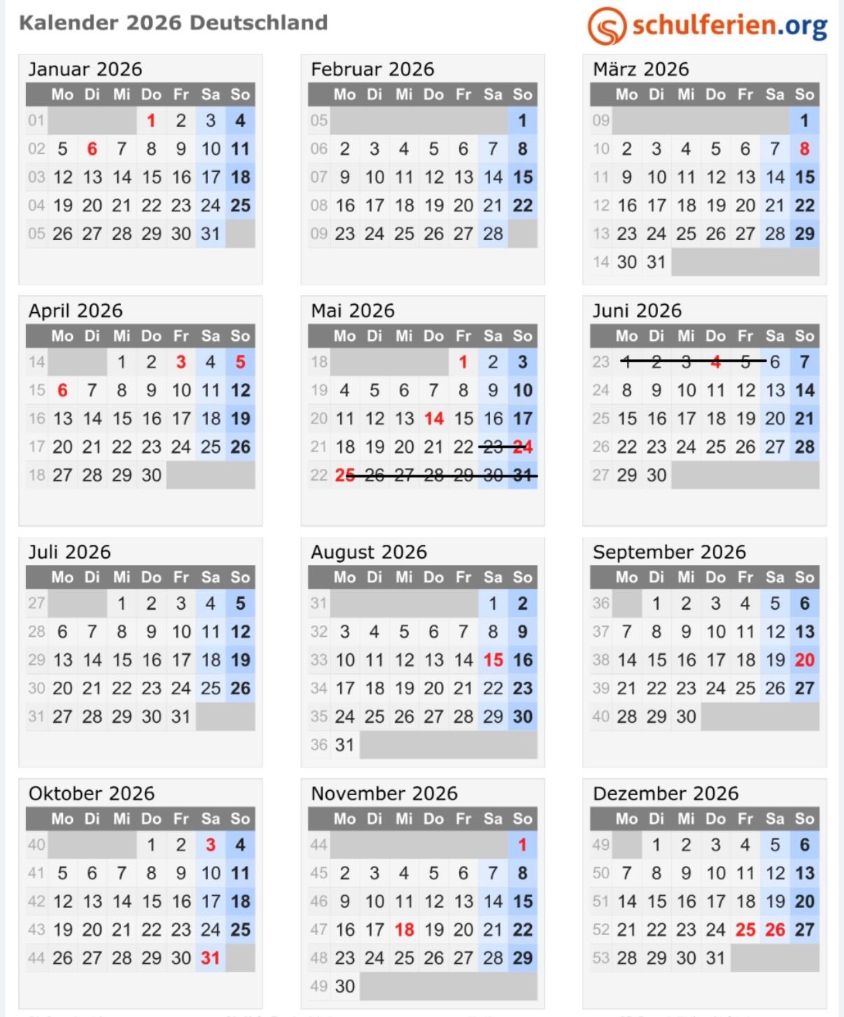| 01.01. - 31.03. | 01.04 - 30.06. | 01.07. - 15.09. | 16.09. - 31.10. | 01.11. - 31.12. |